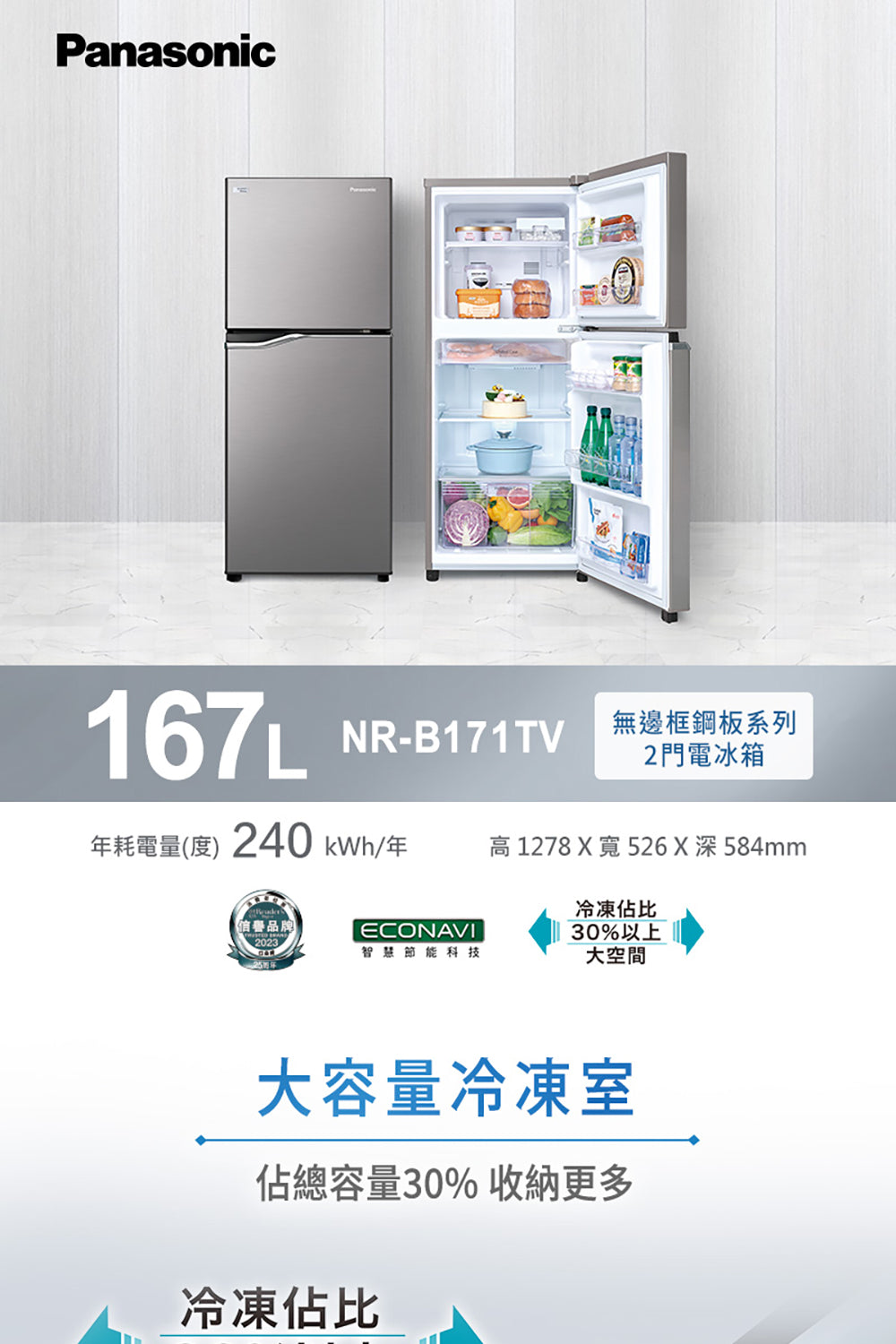 Panasonic 國際牌|NR-B171TV 167L雙門變頻晶鈦銀冰箱