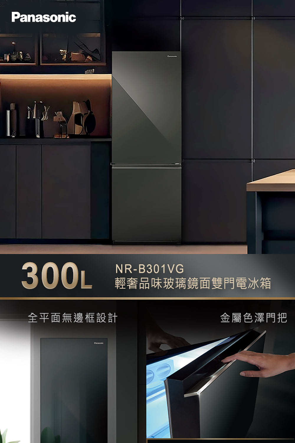 Panasonic 國際牌|NR-B301VG 300L一級能效玻璃門雙門變頻冰箱