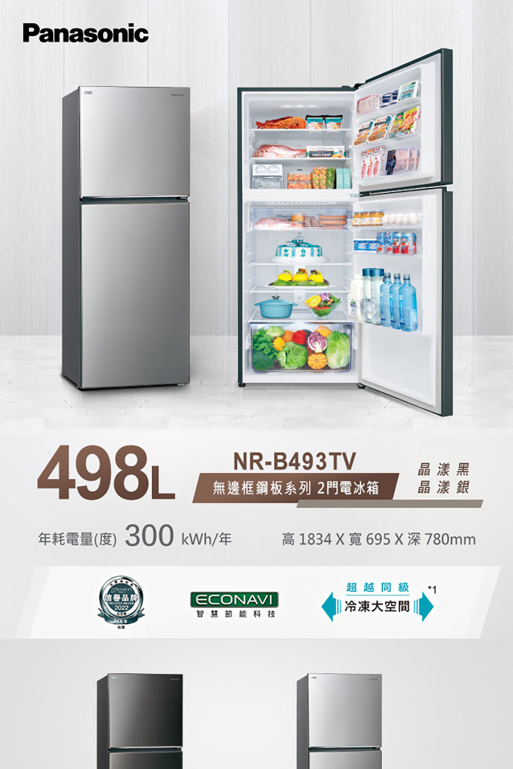 Panasonic 國際牌|NR-B493TV 498L一級能效變頻鋼板雙門冰箱(晶漾黑/晶漾銀)