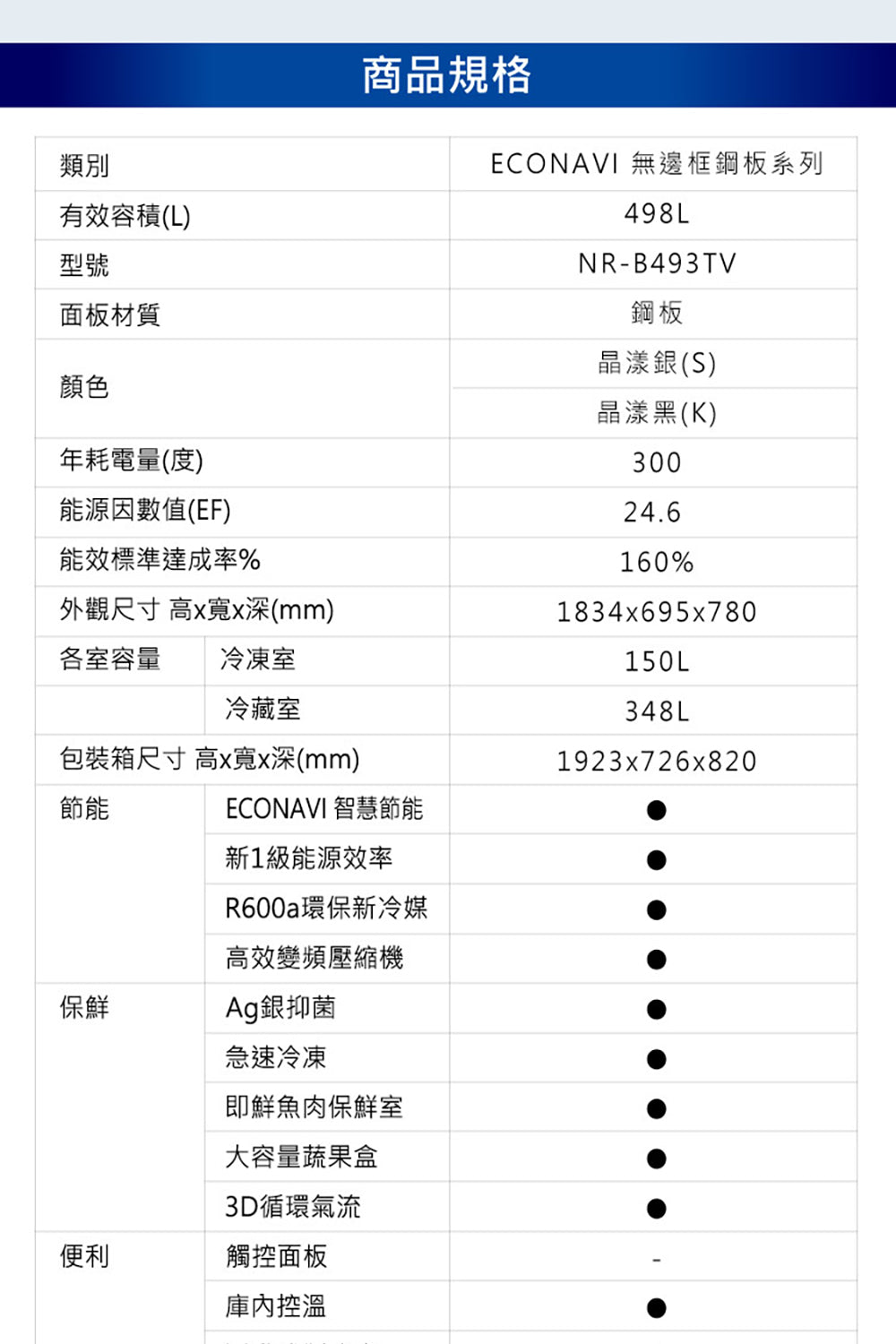 ● 有效容積498L ● 超越同級*¹ 冷凍大空間 ● Ag銀除菌 ● ECONAVI智慧節能 ● 急速冷凍 ● 3D循環氣流 ● 新1級能源效率