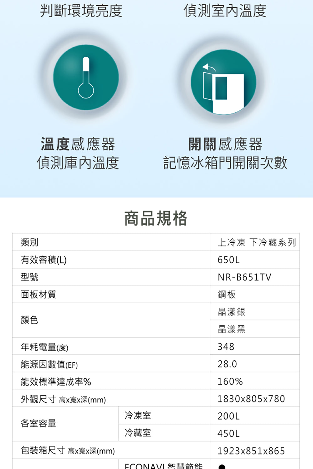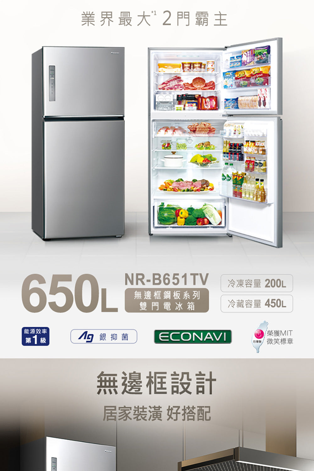 Panasonic 國際牌|NR-B651TV 650L新一級能效智慧節能雙門變頻冰箱(晶漾黑/晶漾銀)