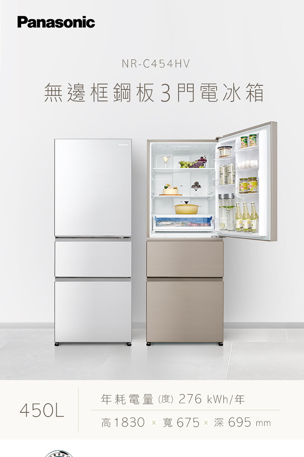 Panasonic 國際牌|NR-C454HV 450L新一級能效三門變頻冰箱(晶漾白/香檳金)