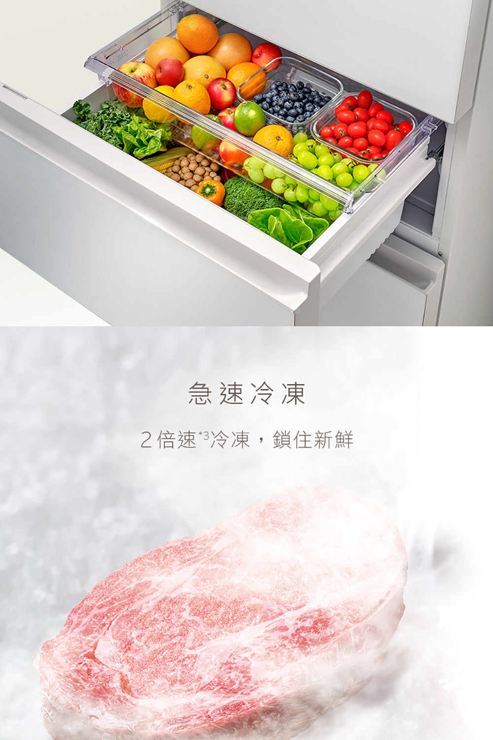 ● 有效容積450L ● -3°C微凍結 ● Ag銀抑菌 ● 冷凍室LED照明 ● ECONAVI智慧節能 ● 新1級能源效率 ● 冷藏室LED照明 照明亮度提升21%*⁶