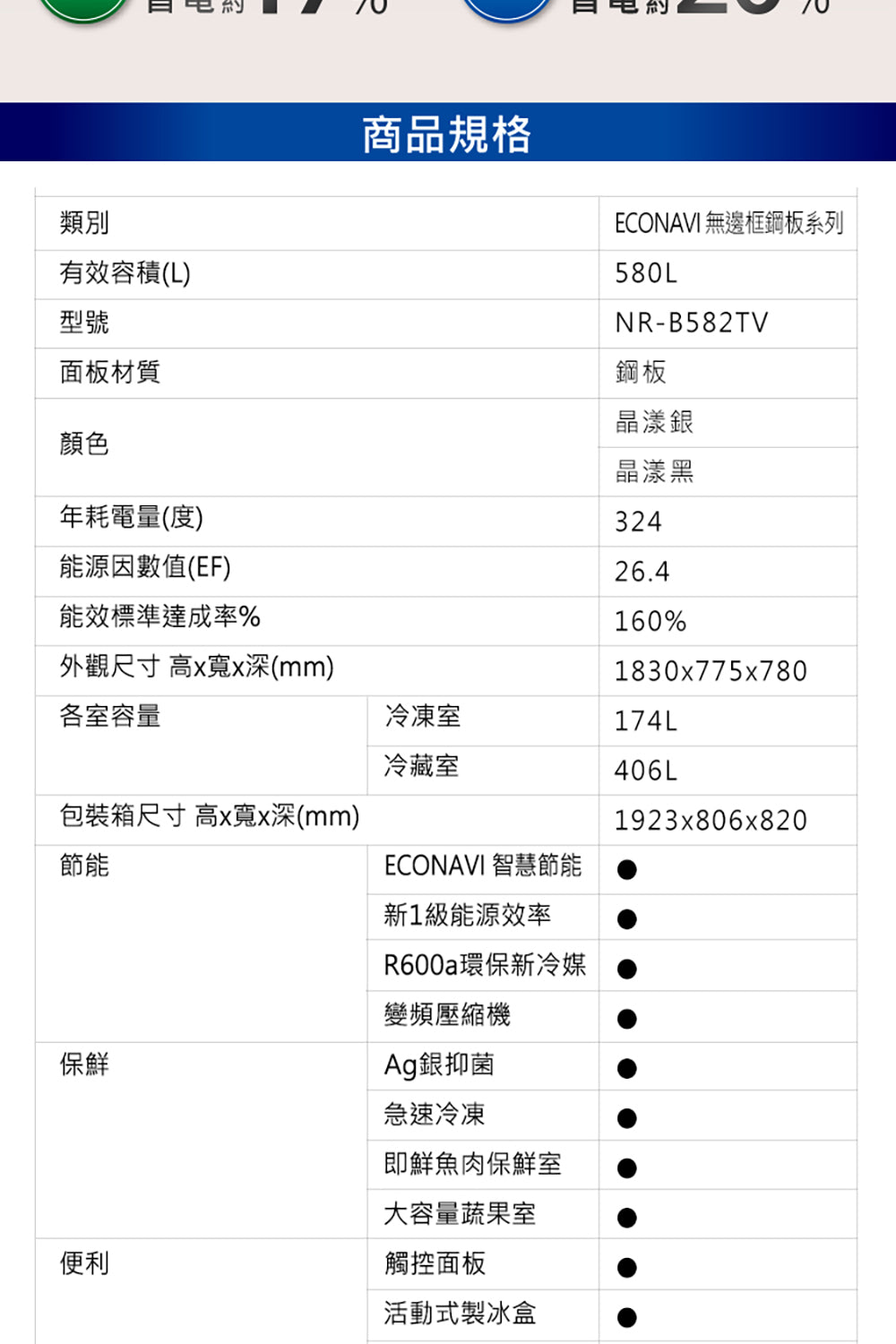 Panasonic 國際牌|NR-C582TV 578L新一級能效三門鋼板冰箱(晶漾黑/晶漾銀)