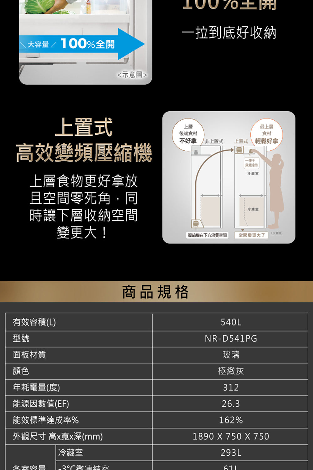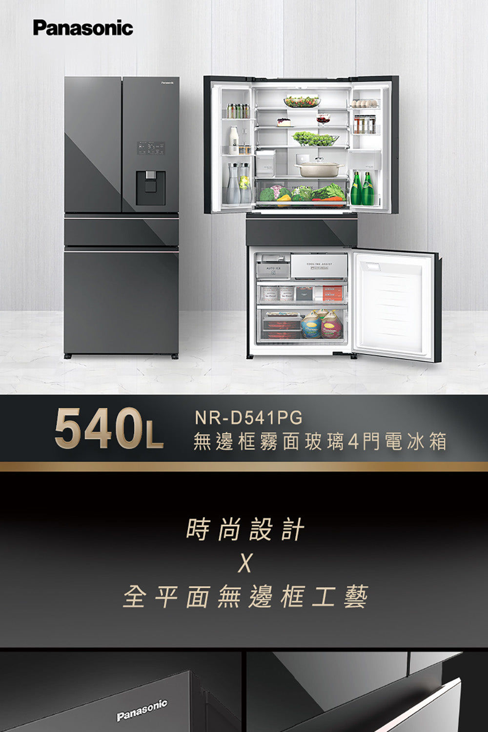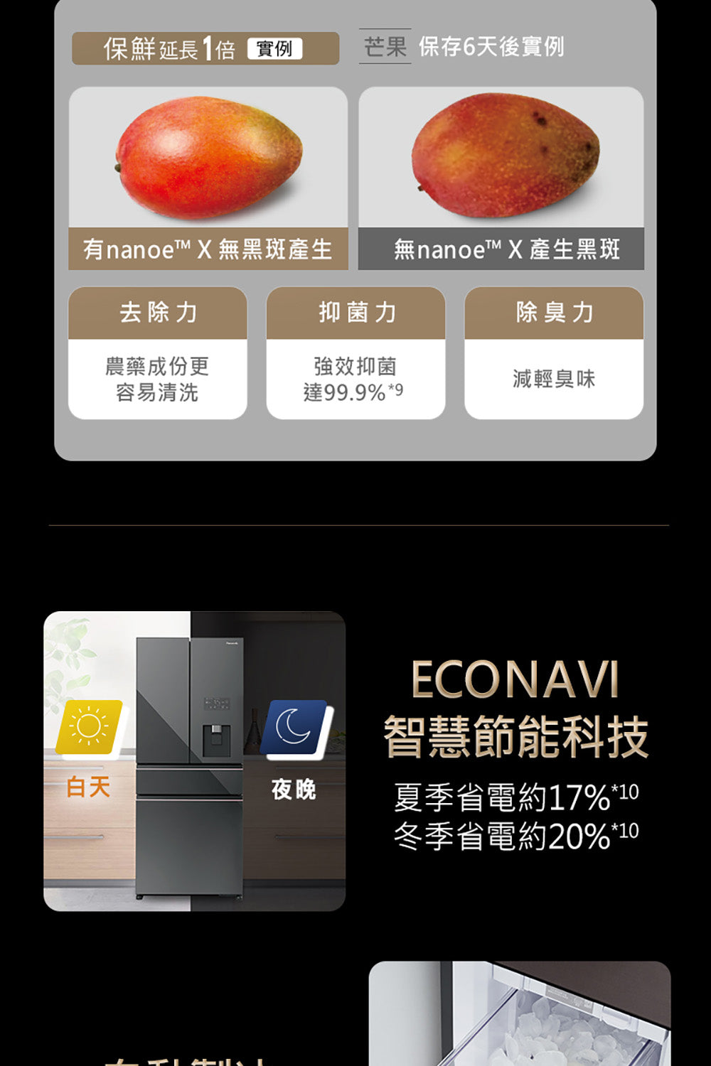 ● 有效容積540L ● 上冷藏下冷凍 ● 新鮮急凍結 ● -3°C微凍結 ● nanoe™ X 健康科技 ● 智慧保濕蔬果室 ● 冰水霸 ● 自動製冰 ● ECONAVI智慧節能 ● 新1級能源效率
