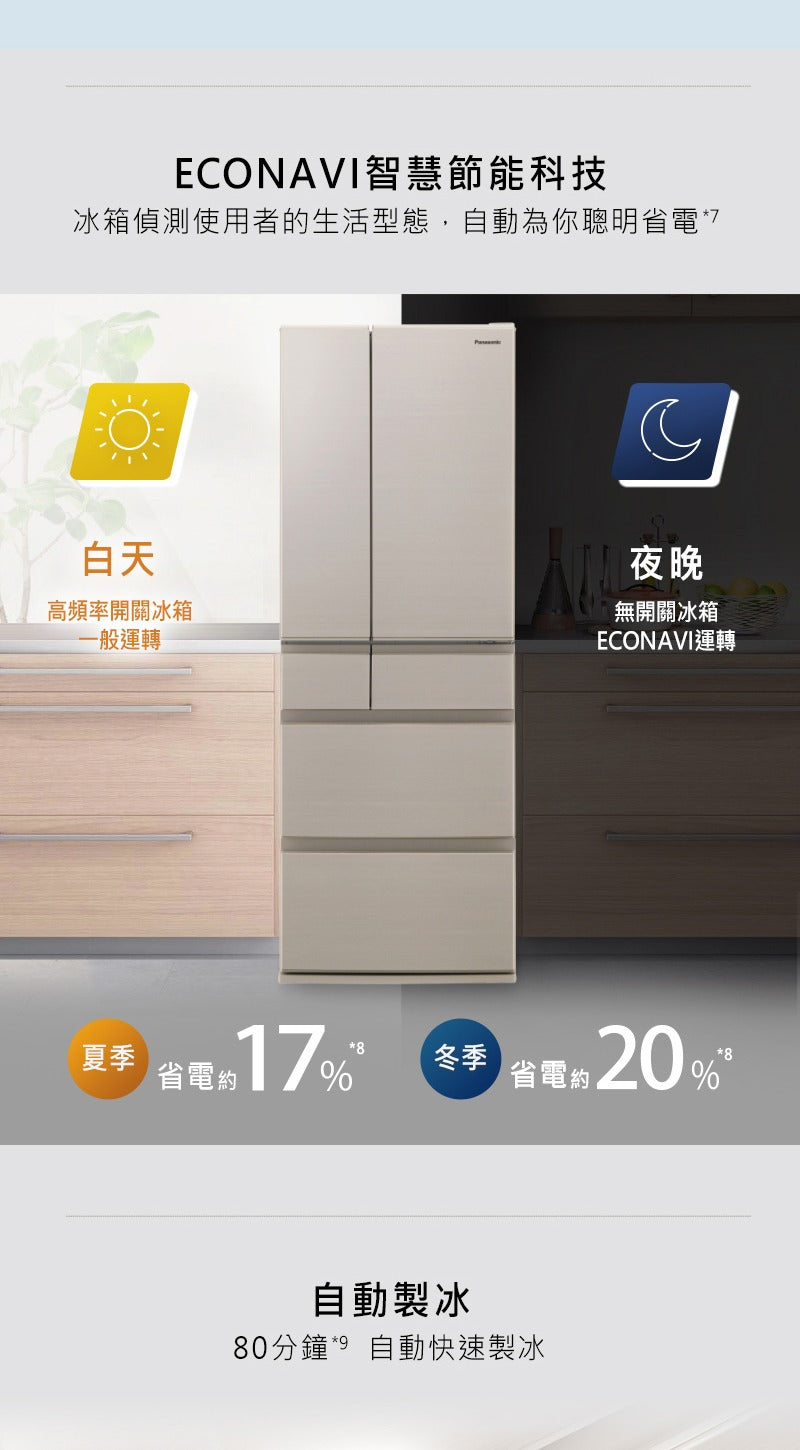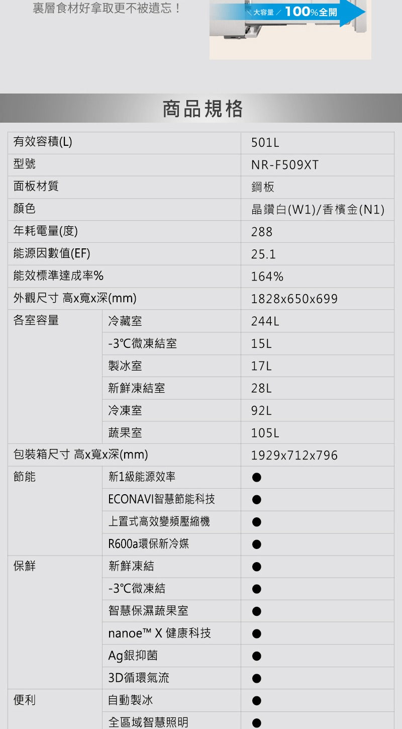 • 有效容積501L • -3°C微凍結 • 智慧保濕蔬果室 • nanoe™ X 健康科技 • ECONAVI智慧節能科技 • 自動製冰