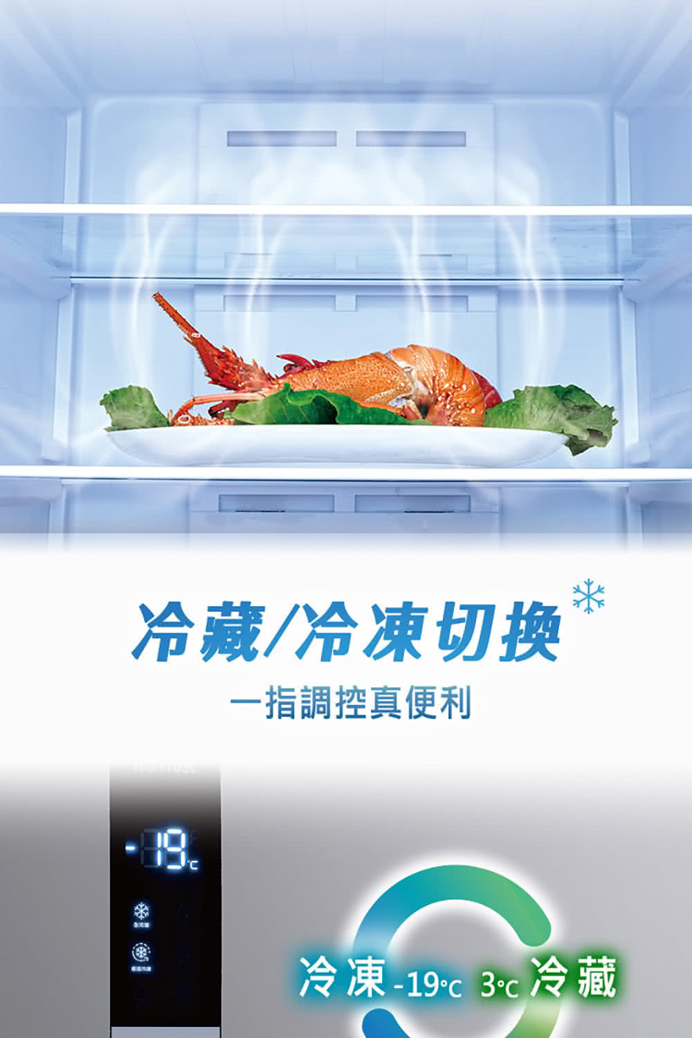 ● 有效容積380L ● 年耗電量348度 ● 冷凍/冷藏切換設計 ● 急速冷凍 ● 自動除霜 ● 高效變頻壓縮機 ● 門棚收納 ● 分層收納櫃 ● 庫外LED顯示 ● R600a環保冷媒 ● 多段溫度調控面板