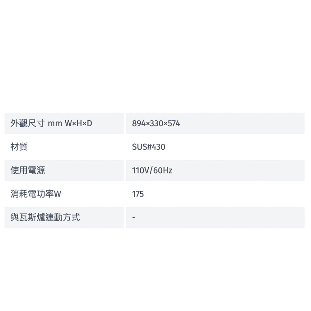 Rinnai 林內|RH-9033S 深罩式水洗電熱除油排油煙機(含運不安裝,安裝費另計)