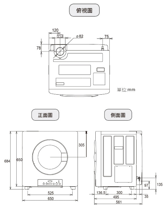 | 外觀尺寸 mm W×H×D | 650×684×561 |