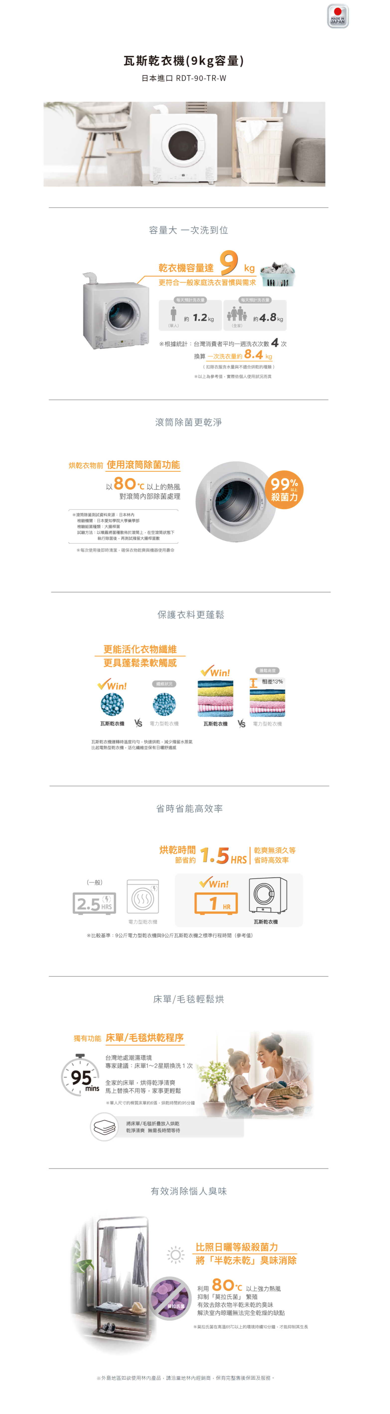 Rinnai 林內 | RDT-90-TR-W 瓦斯乾衣機-9kg(含運不安裝,安裝費另計)