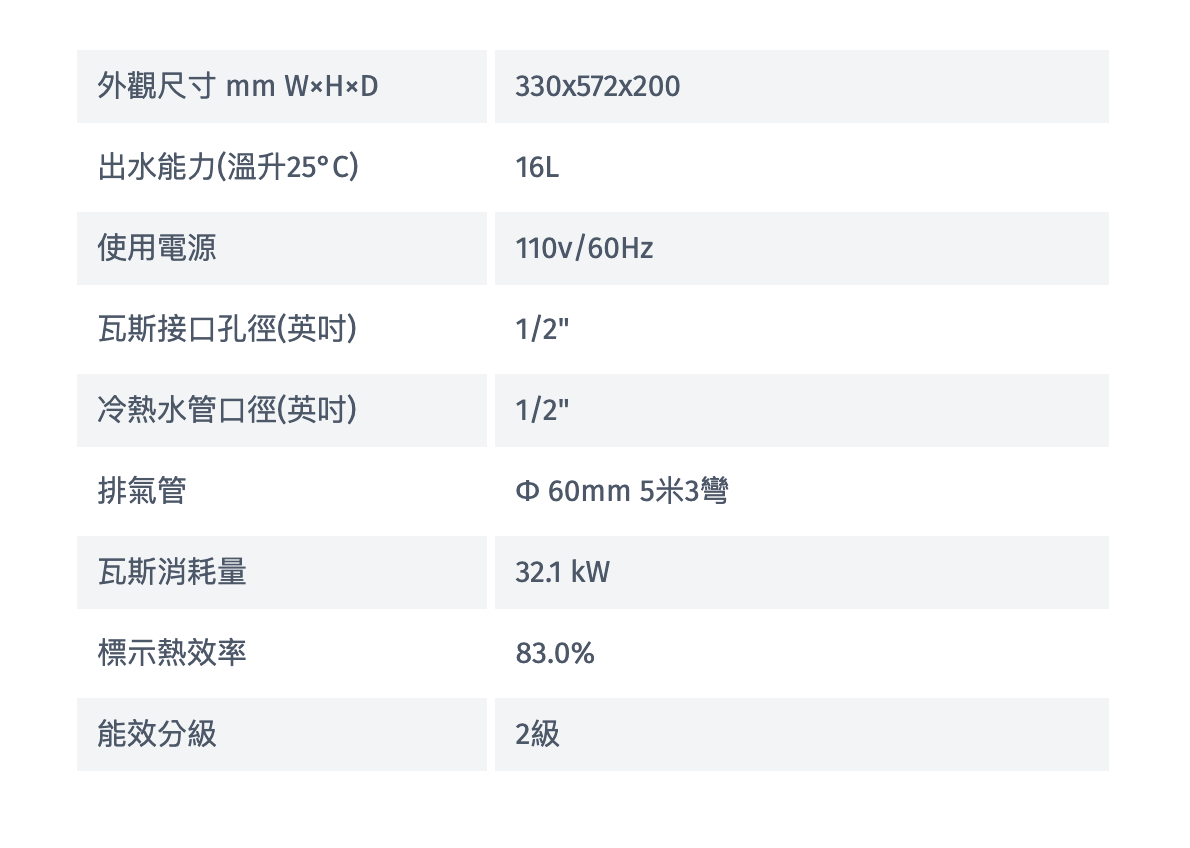 13L/16L出水量(每分鐘/温升25度)