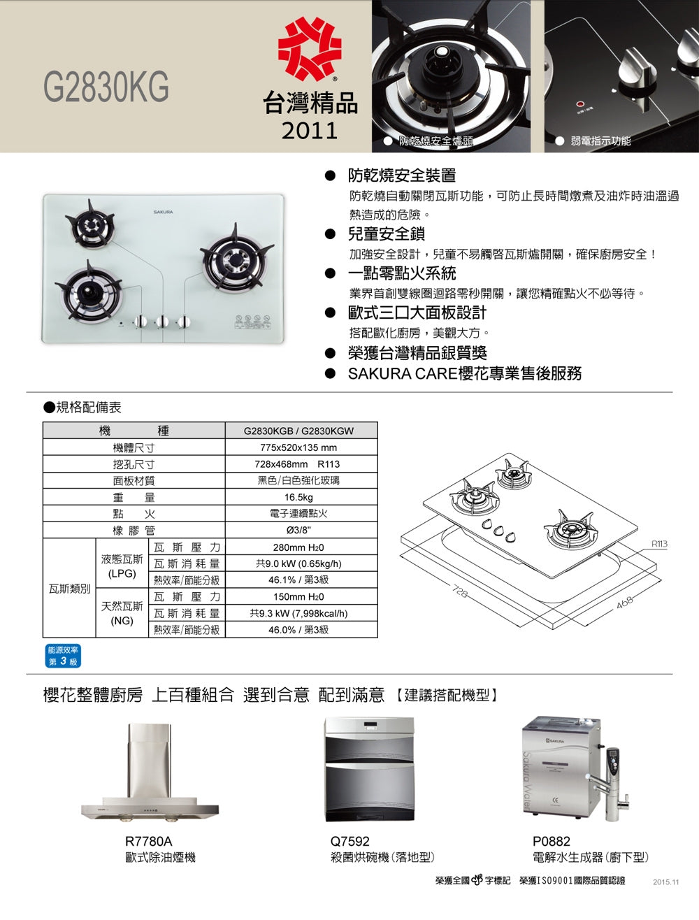 Sakura櫻花|三口防乾燒節能檯面爐 G2830KGB(不含安裝)