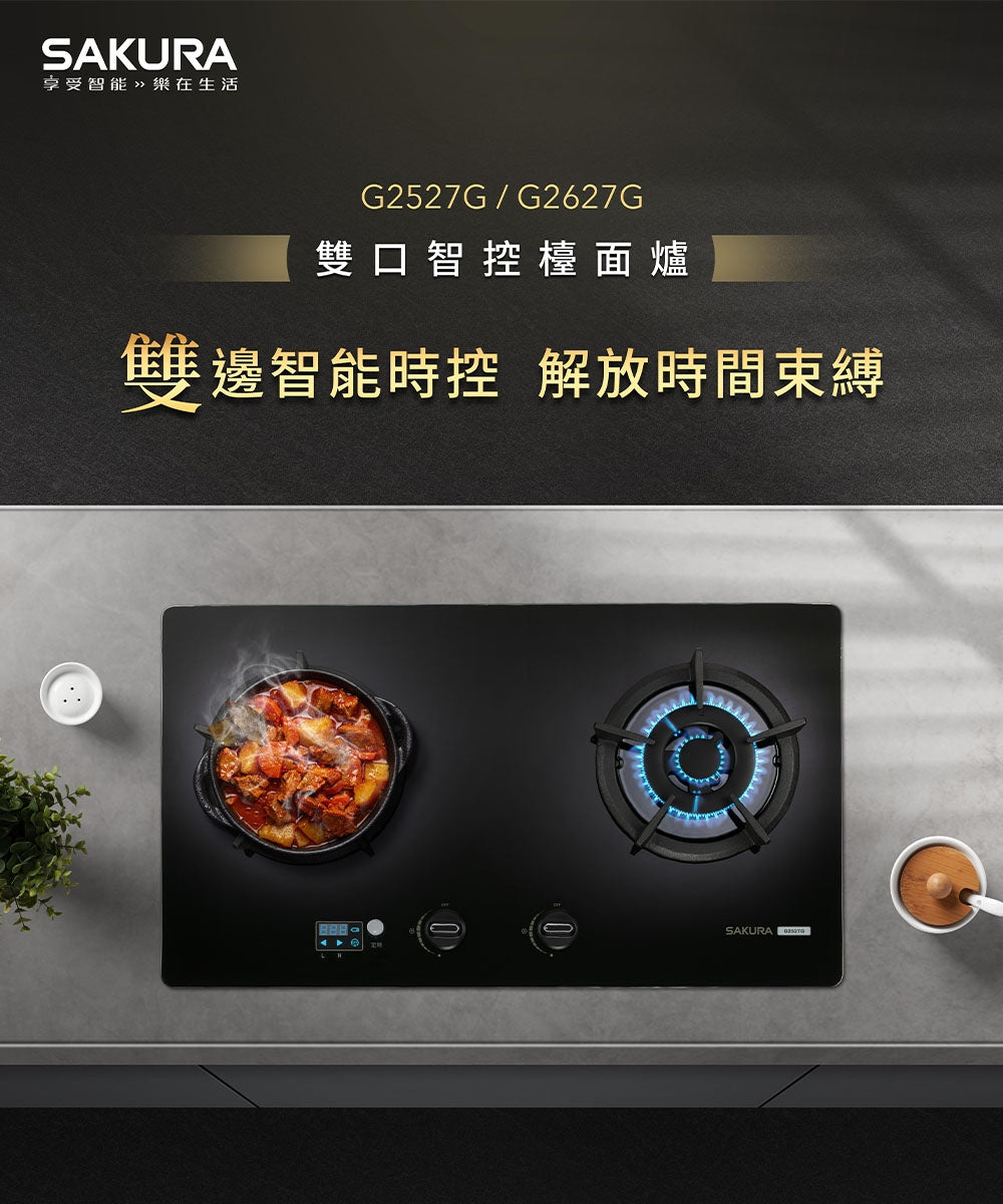 Sakura櫻花|二口大面板智控易清檯面爐 G2627G(不含安裝)