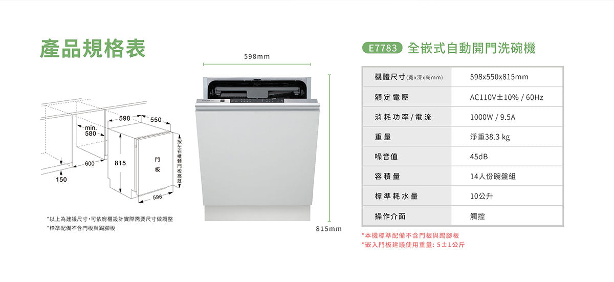 Sakura櫻花|全嵌式自動開門洗碗機 E7783