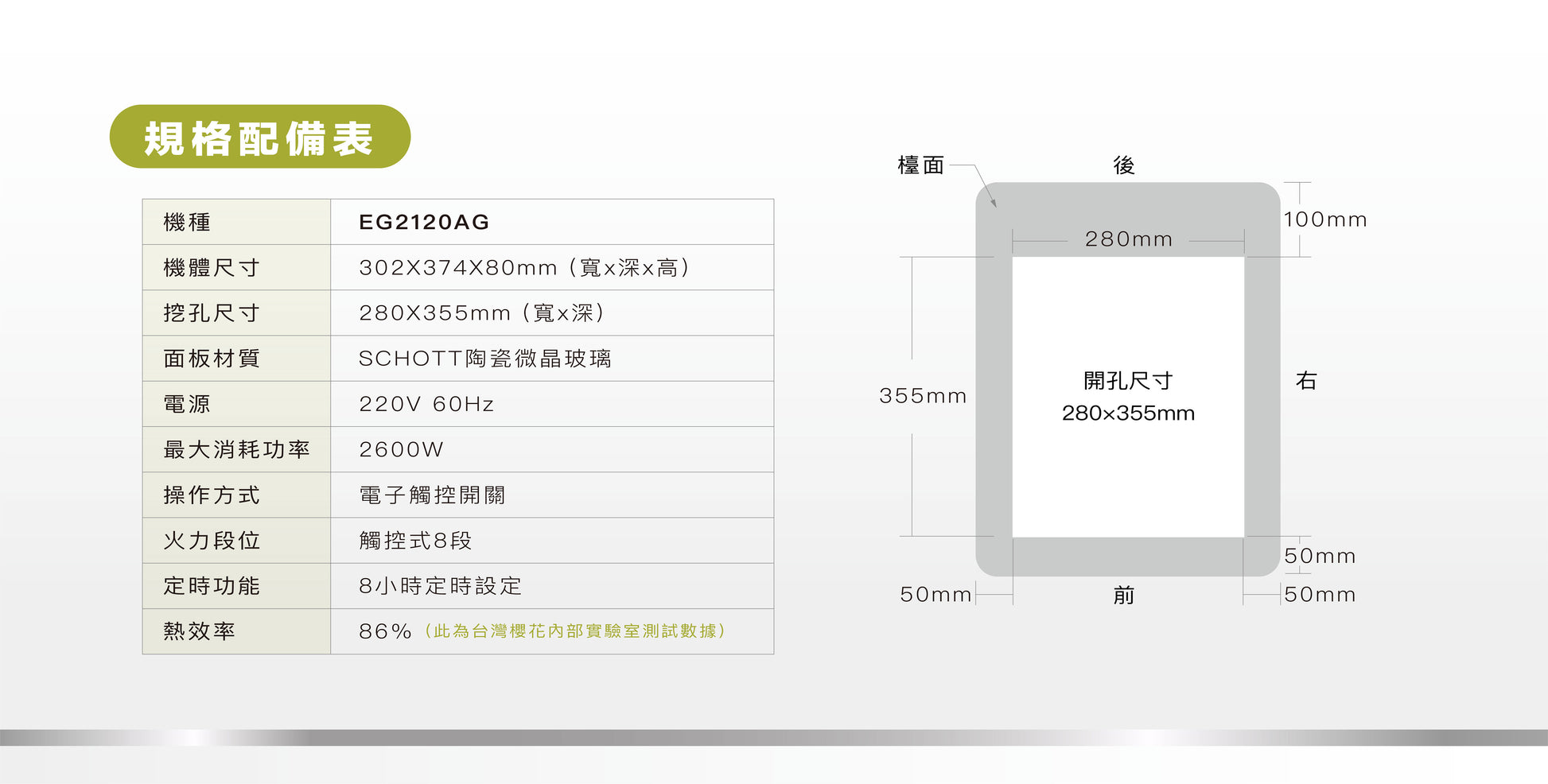 面板材質 SCHOTT陶瓷微晶玻璃
