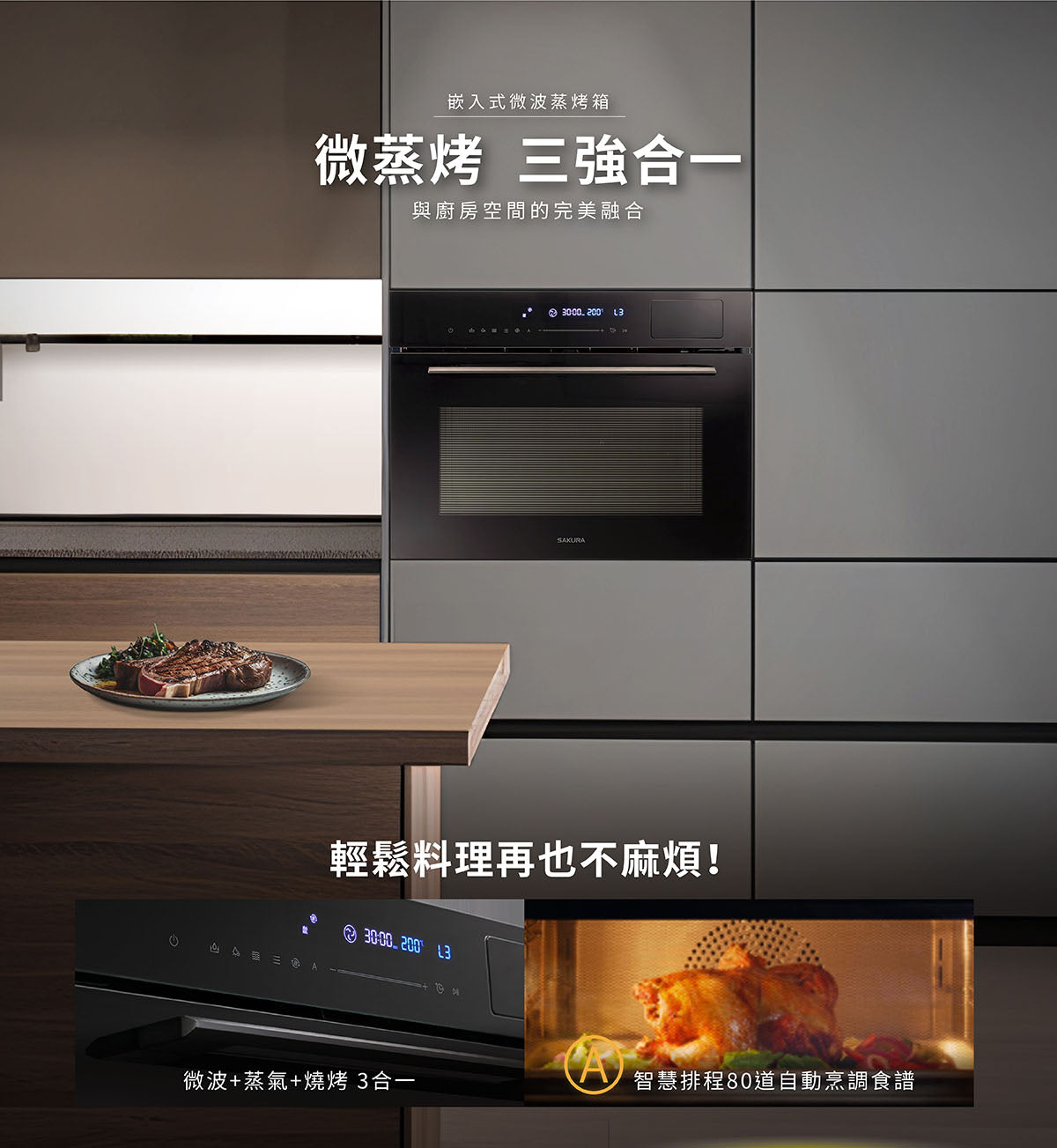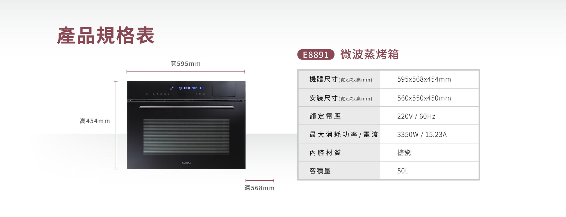 Sakura櫻花|嵌入式微波蒸烤箱 E8891