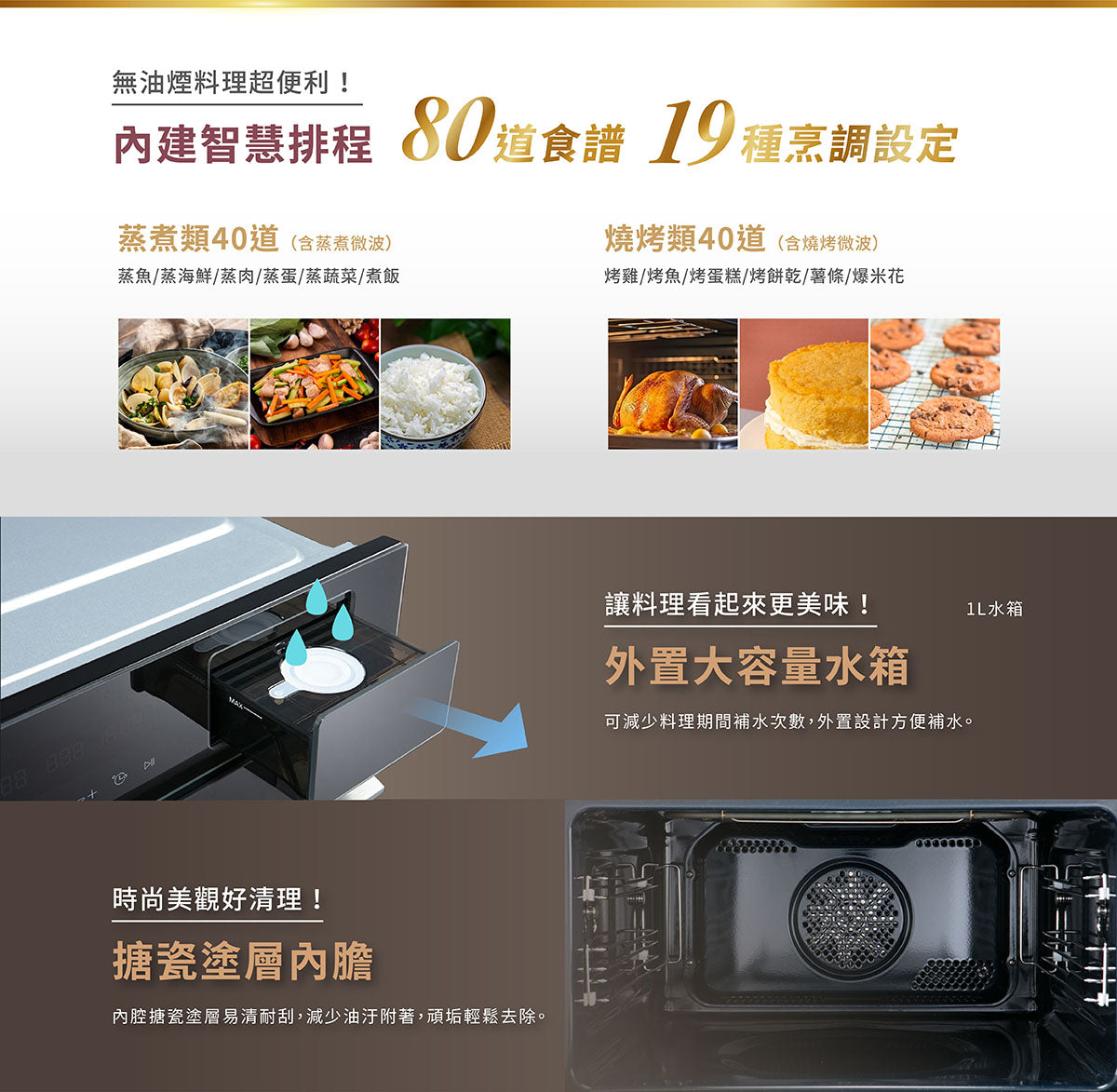 ▪ 大容量外置水箱,加水免開門,保持食材料理溫度