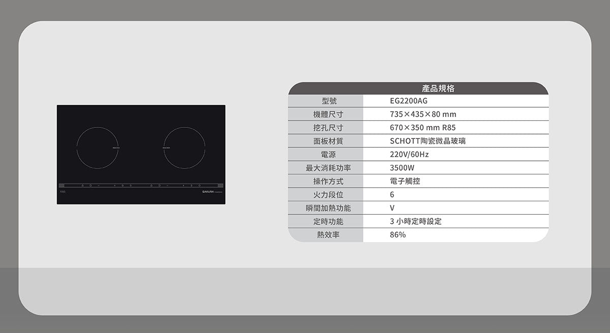Sakura櫻花|雙口IH感應爐 EG2200AG