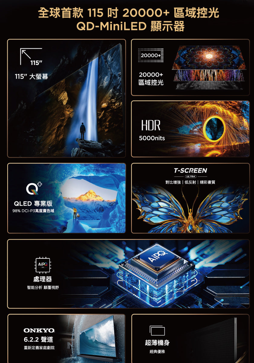 TCL| 115吋miniLED 4K連網智慧顯示器 115X955
