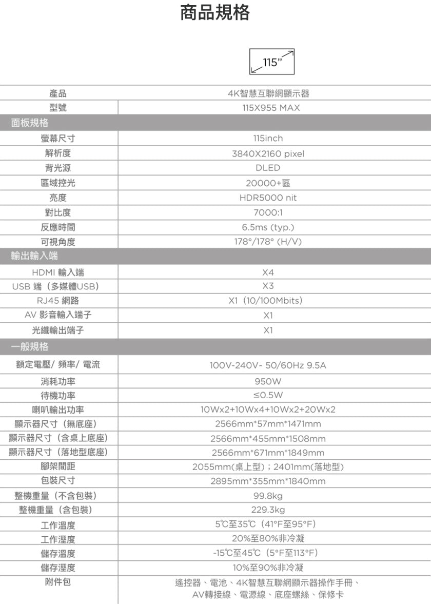 115" 超大螢幕無與倫比的家庭劇院體驗