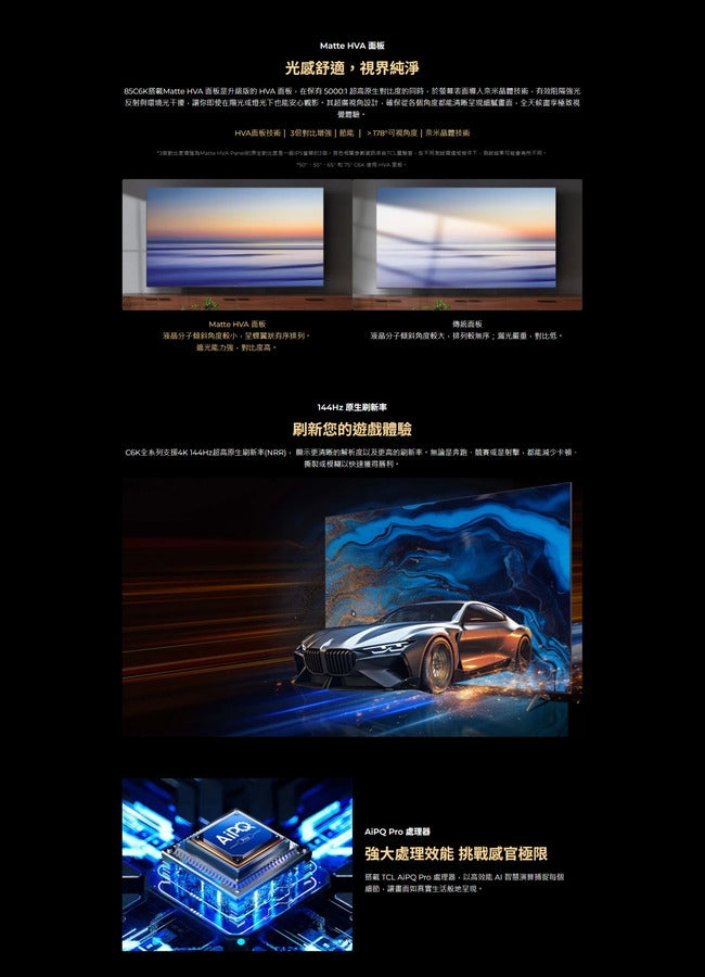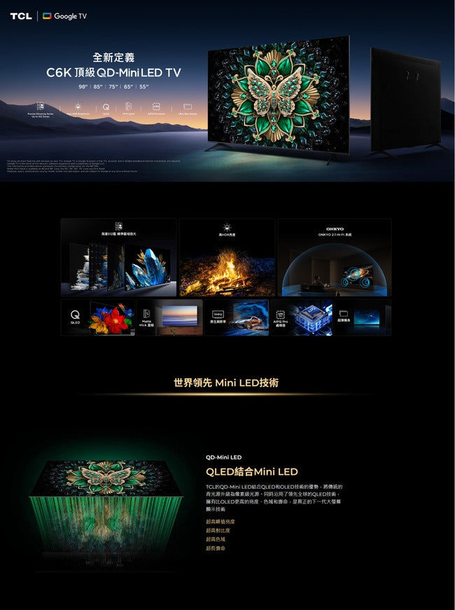TCL|55吋 C6K 頂級QD-Mini LED Google TV 量子智能連網液晶顯示器 55C6K