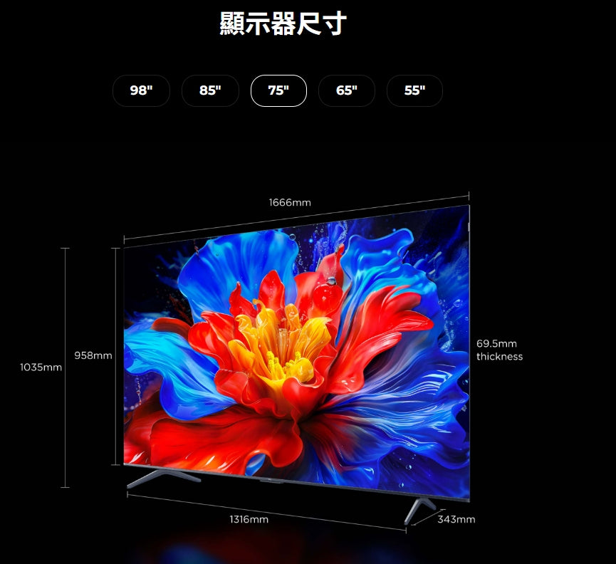 TCL|75吋 P8K QLED Google TV 量子智能連網液晶顯示器 75P8K