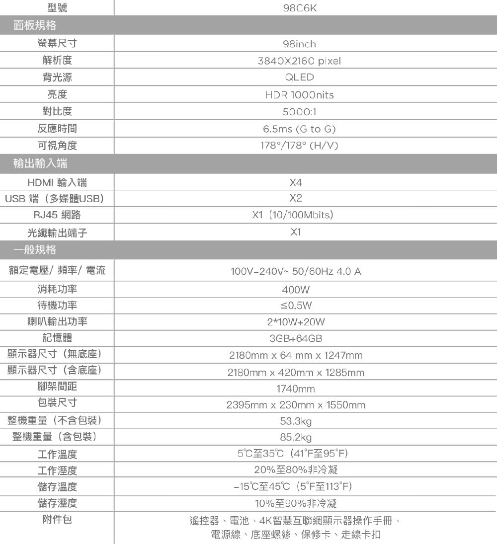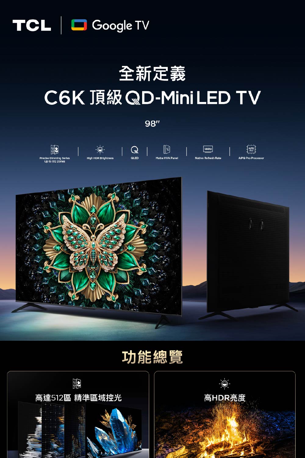 TCL|98吋 C6K 頂級QD-Mini LED Google TV 量子智能連網液晶顯示器 98C6K