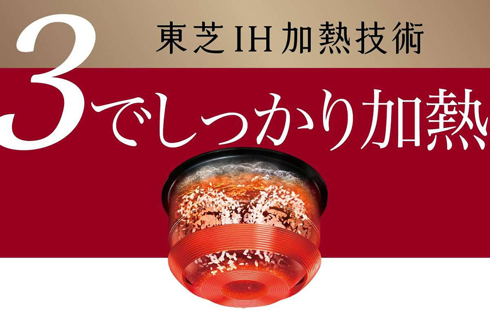 TOSHIBA 東芝獨家三重奏:真空專利技術/同級最厚銅釜/同級最大火力🔥利用真空壓力讓水瞬間滲入米芯,26分鐘高效烹飪3杯米;匠心鍛造5mm鑽石備長炭銅厚釜,最強蓄熱性且堅固耐用防腐蝕;1400W搭配IH烹飪技術,讓米飯在內鍋720°翻滾受熱!