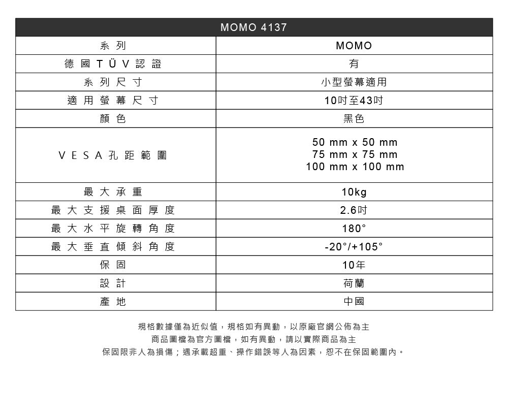 Vogel's| MOMO 4137 10~43吋 可調式螢幕支架 承重10kg