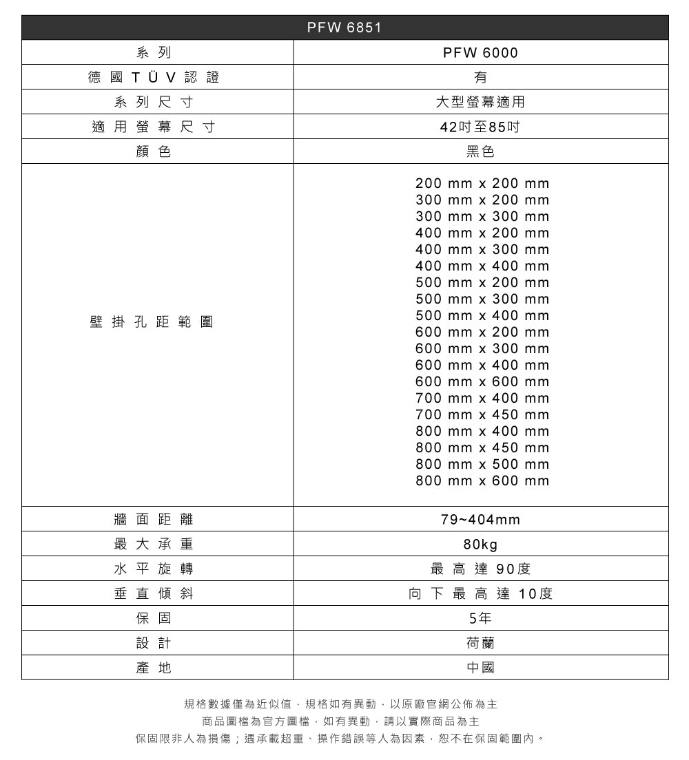 Vogel's| PFW 6851 42~85吋 伸縮式 壁掛架