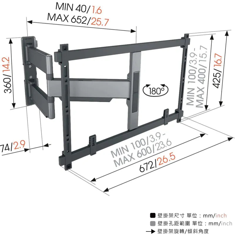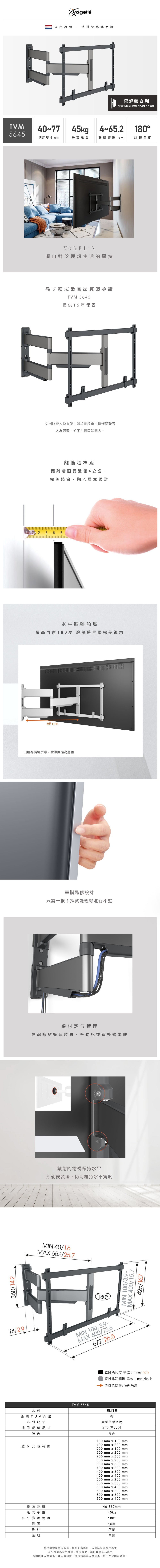 Vogel's|TVM 5645 40-77吋適用 單臂式伸縮壁掛架 OLED QLED適用