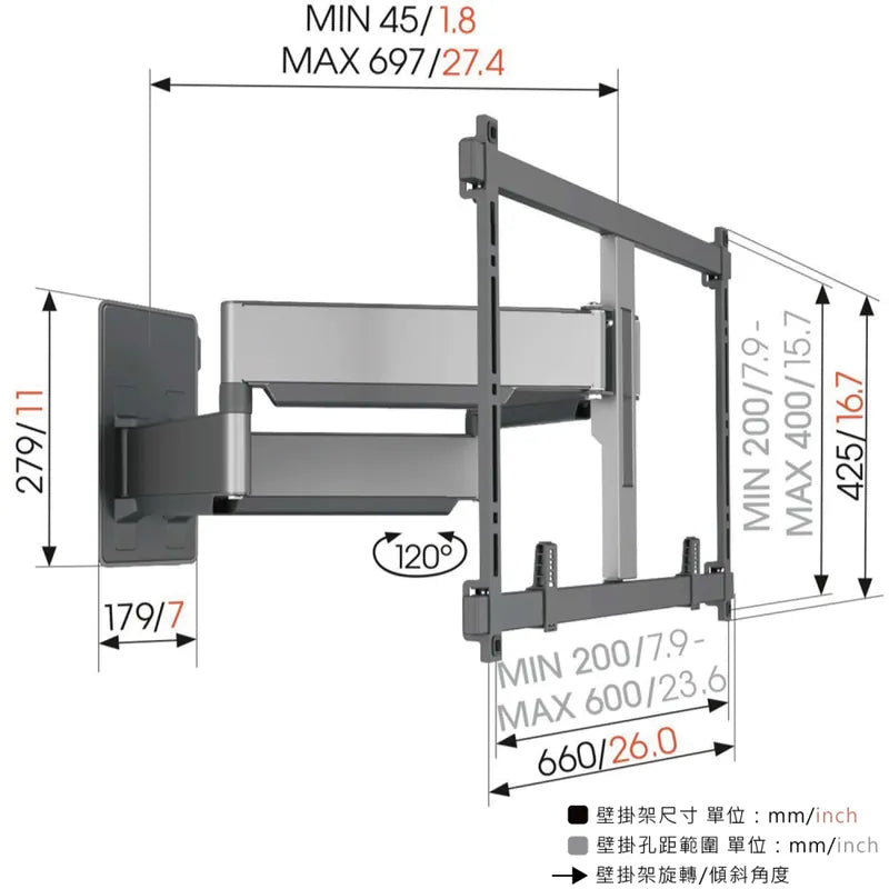 Vogel's|TVM 5855 55-100吋適用 雙臂式伸縮壁掛架 灰色 OLED QLED適用