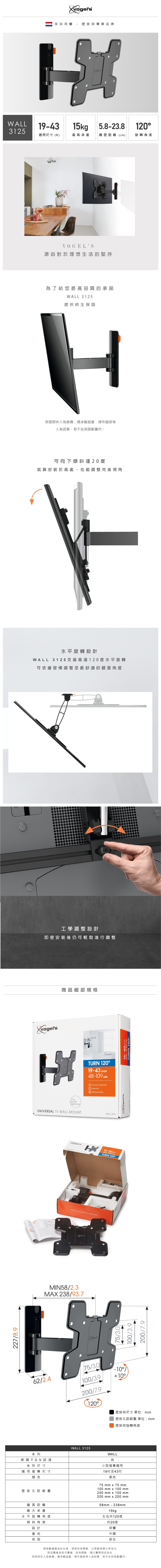 Vogel's|WALL 3125 19-43吋 單臂式 壁掛架